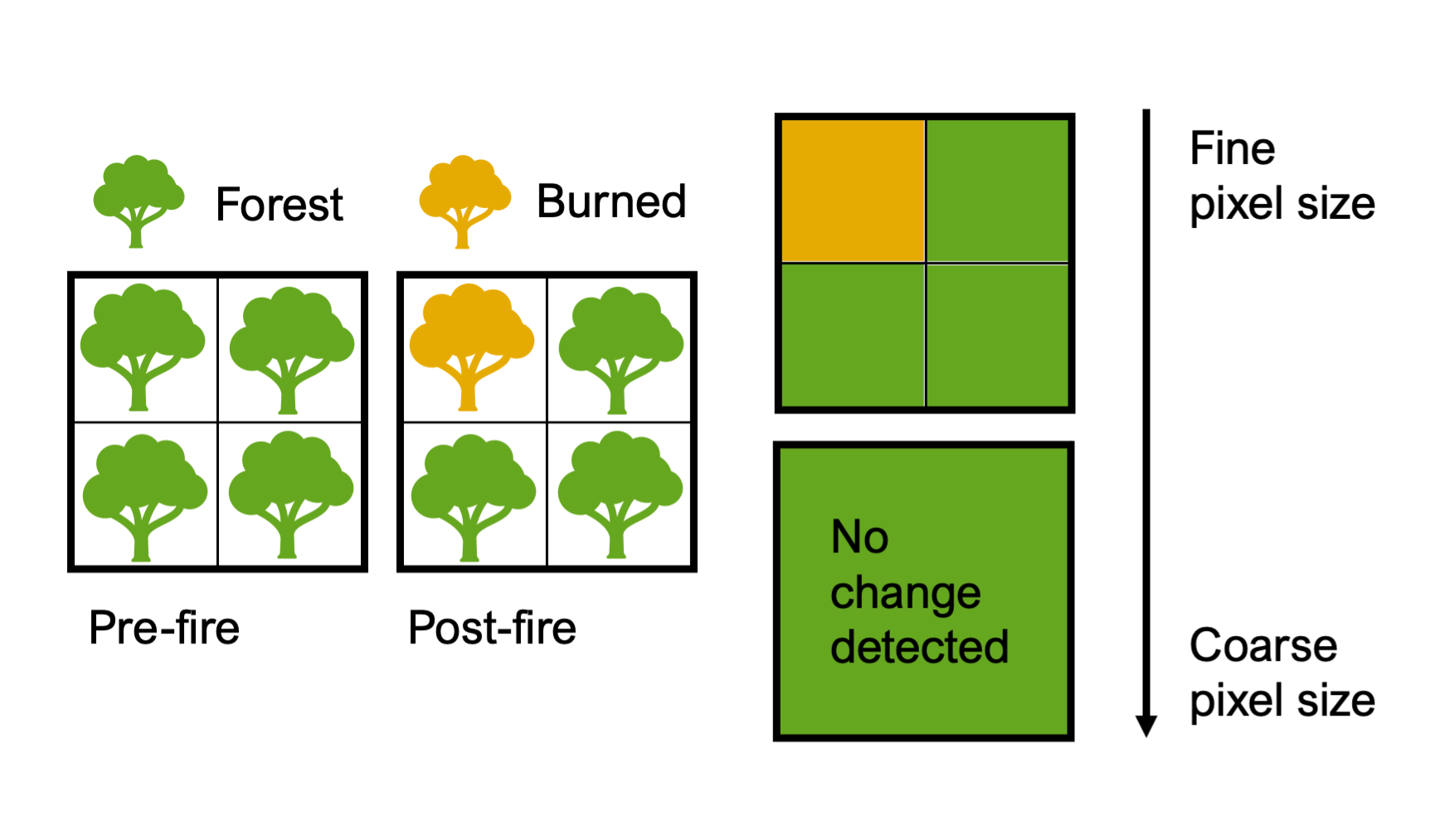 We often need detailed data to detect change. In this example, we discuss why we need data at finer pixel sizes to detect forest losses and gains.