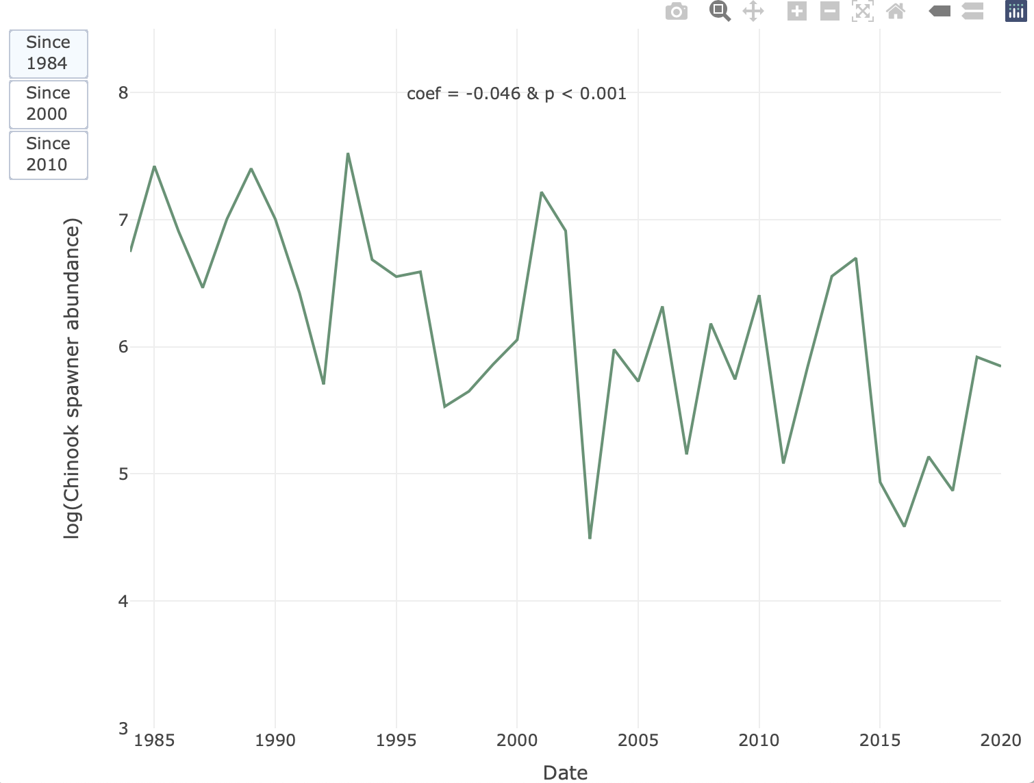 To understand whether an ecosystem is changing, we measure it over time. However, if we only measure the ecosystem over a short time, then we may not detect a change, even when the ecosystem has changed. This example explores how the monitoring time-period influences outcomes.