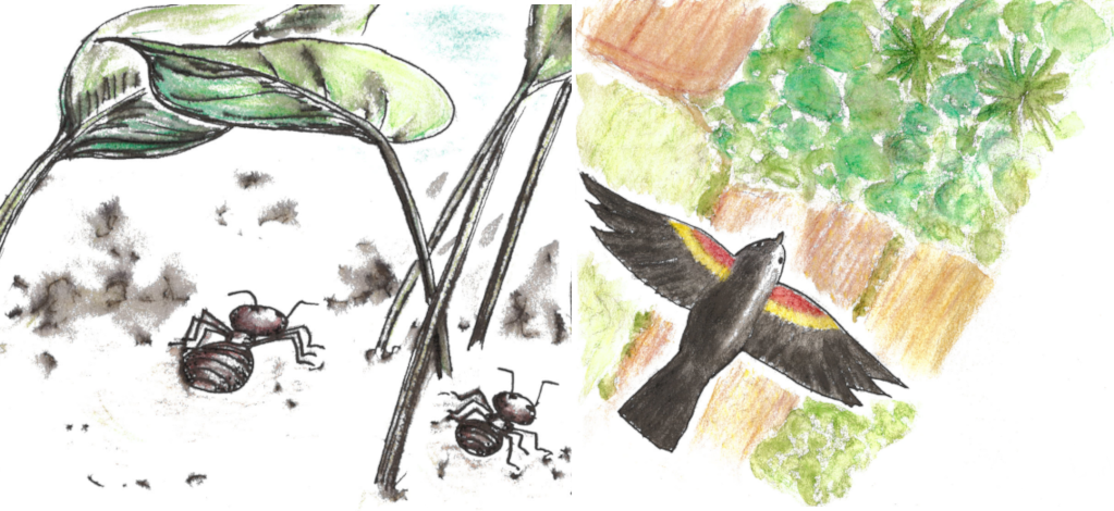 Taking a multi-scale perspective means that we can measure things at fine or small scales, for example measuring carbon in a handful of soil, or at broad or large scales, for example when studying a landscape of fields and forests. For the latter, we can use techniques like remote sensing that give us a bird’s-eye perspective of larger ecological patterns and processes.