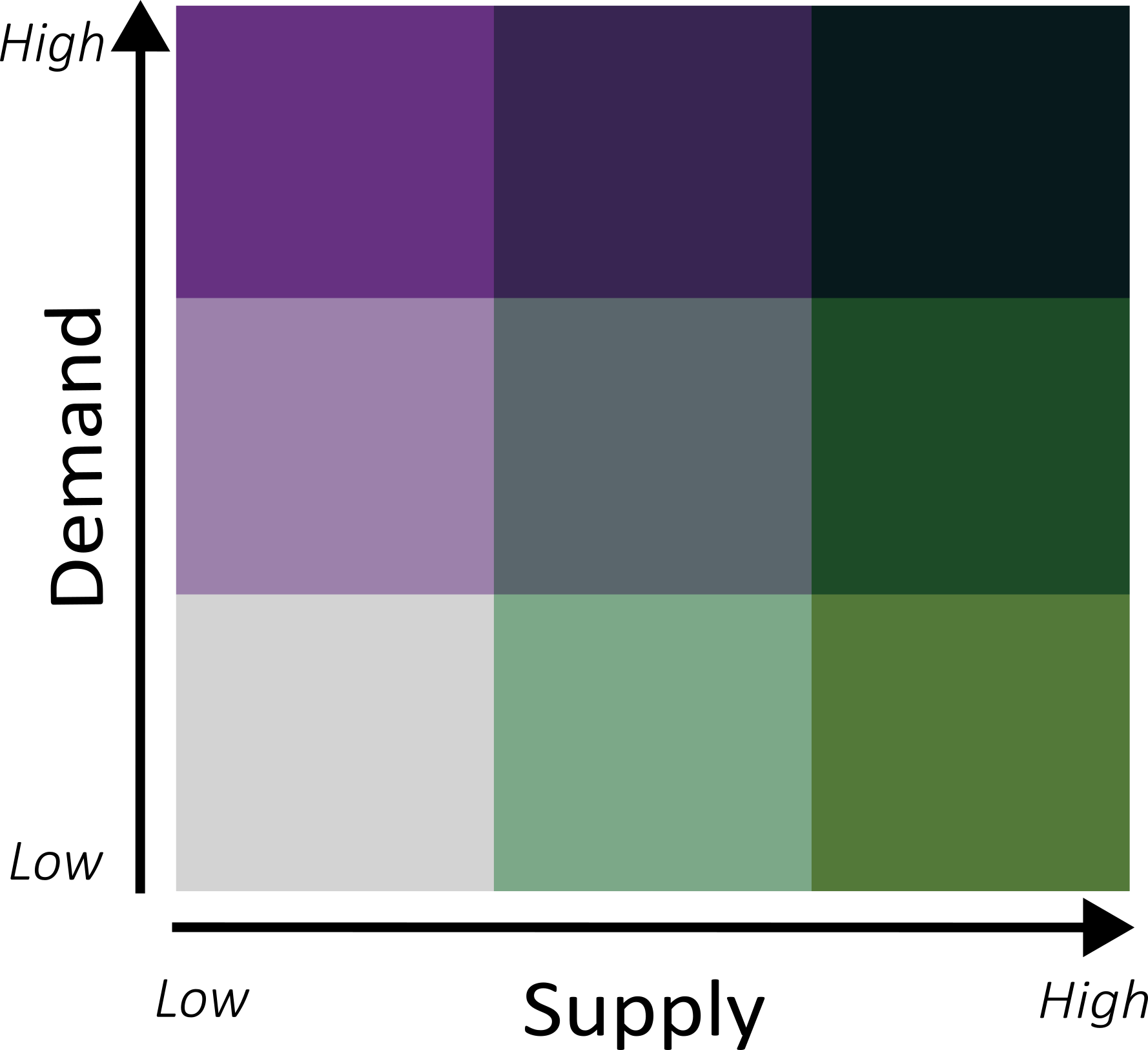 We’ll explore some examples of when demand and supply don’t line up using the ecosystem service of pollination as an example. This mismatch can happen in three main ways: